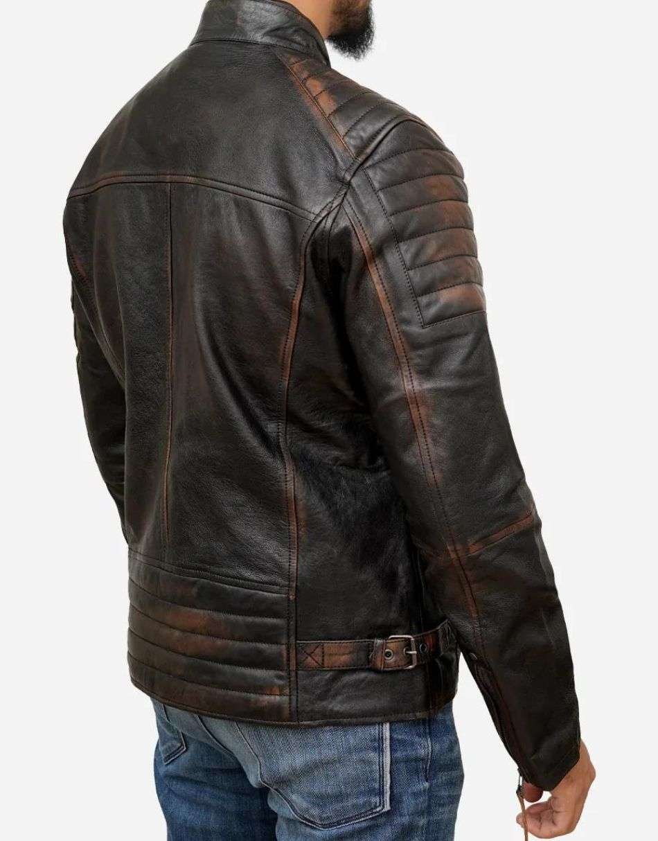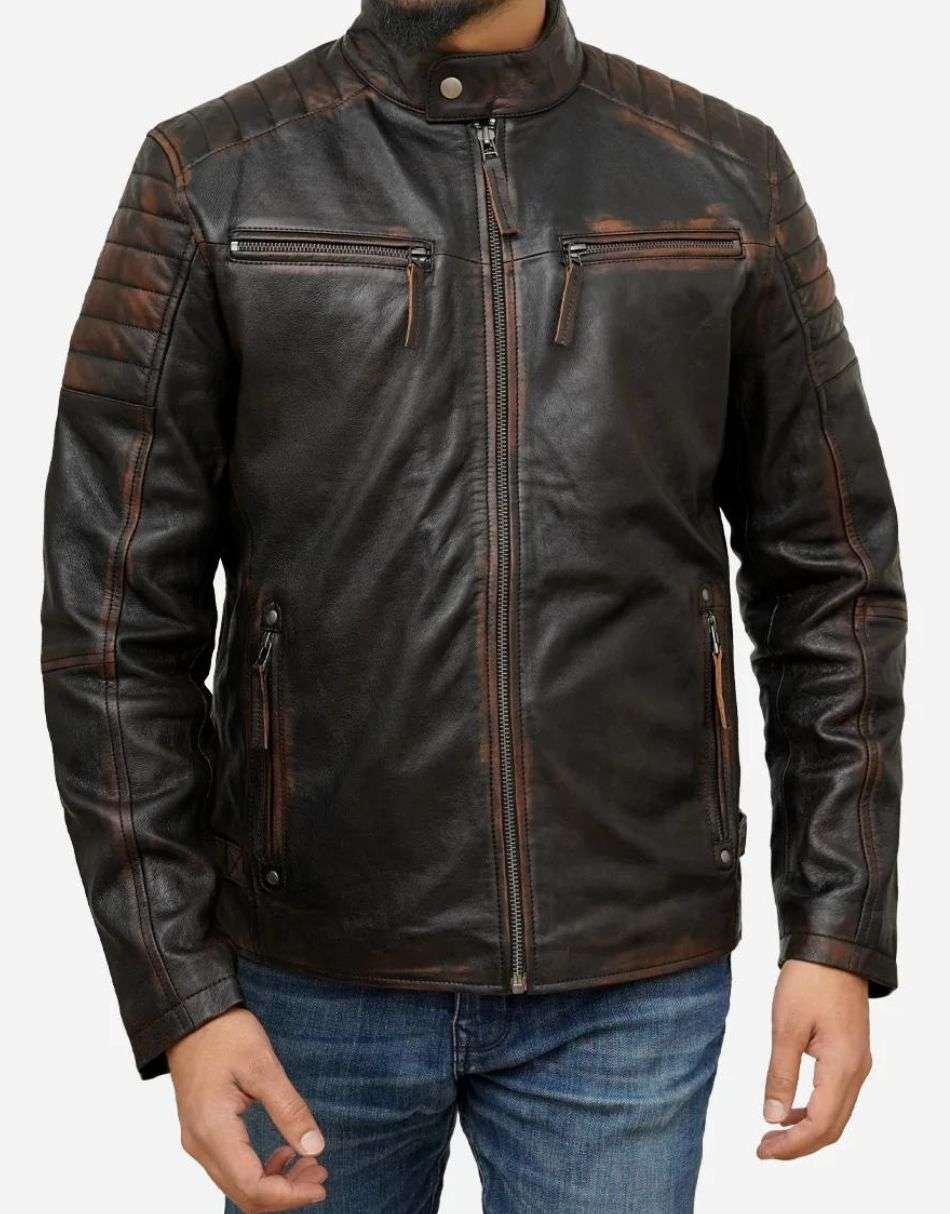 Men’s Moto Cafe Racer Distressed Brown Leather Jacket