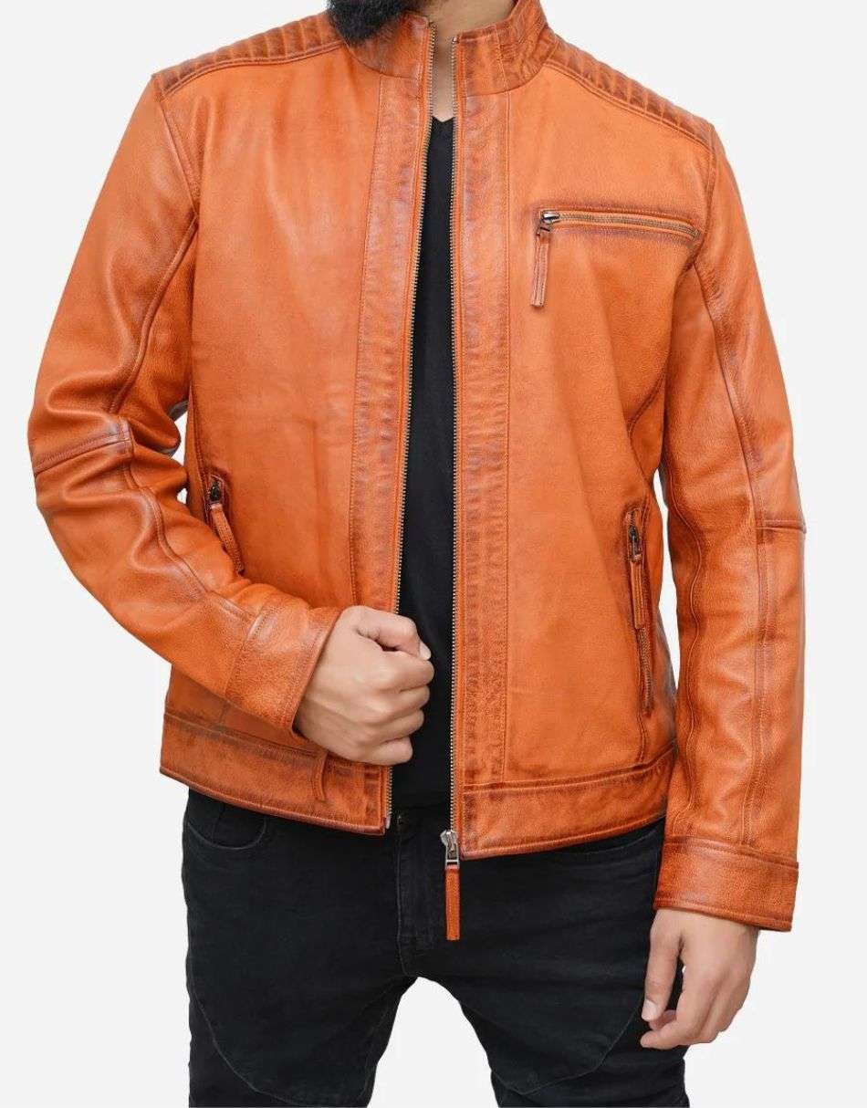 Be the first to review “Mens Tan Brown Leather Motorcycle Jacket”