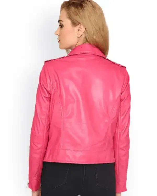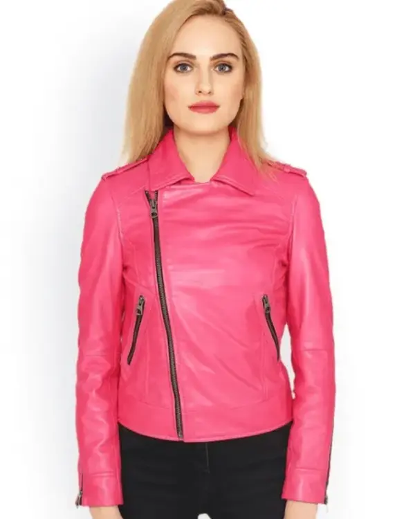 Do you fearless, powerful women like to bike a lot? If so, you need this amazing biker pink leather jacket. to go with your biking classic attire. It is biker-mod leather jacket designed specifically for females like you. Additionally, it has a slim-fit design that accentuates your feminine contours. The jacket’s belt can be adjusted, and the collar is buttoned. The front of it has a (YKK) zipper that may be used to close it. There are two waist zipper pockets as well, which adds to the interesting aspect of this jacket.
